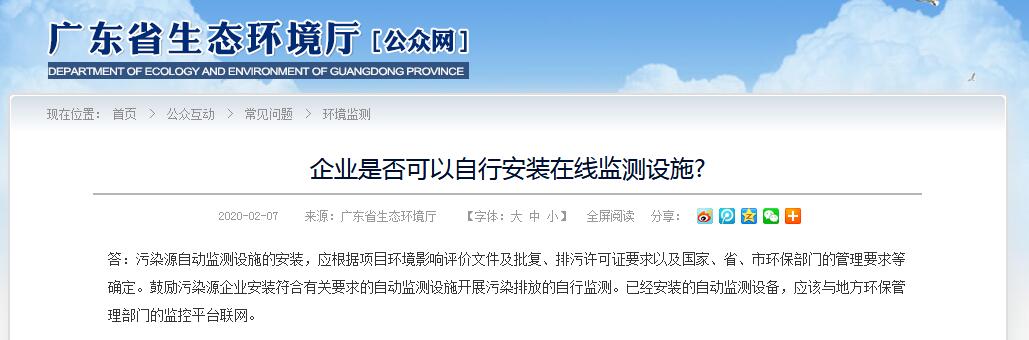 廣東環(huán)保省廳回復(fù)|企業(yè)是否可以自行安裝在線監(jiān)測設(shè)施?