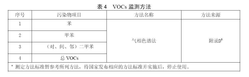 5.2.5 VOCs的分析測定應按照表4規定執行。