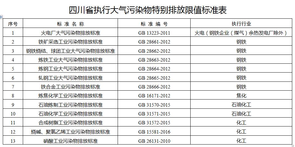 為加快我省大氣環境質量改善,打贏藍天保衛戰,根據《中華人民共和國大氣污染防治法》《四川省〈中華人民共和國大氣污染防治法〉實施辦法》《四川省打贏藍天保衛戰實施方案》等相關規定,決定在我省大氣污染防治重點區域執行顆粒物、二氧化硫、氮氧化物和揮發性有機物等大氣污染物特別排放限值。