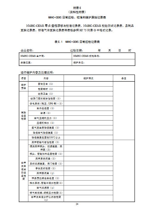 10.1總體要求NMHC-CEMS運維單位應根據NMHC-CEMS使用說明書和本標準的要求編制儀器運行管理規程,確定系統運行操作人員和管理維護人員的工作職責。運維人員應當熟練掌握NMHC-CEMS的原理、使用和維護方法。NMHC-CEMS日常運行管理應包括日常巡檢和日常維護保養,需滿足HJ75中10.2日常巡檢和10.3日常維護保養的相關要求,并符合本標準附錄E和HJ75附錄G中格式記錄要求。