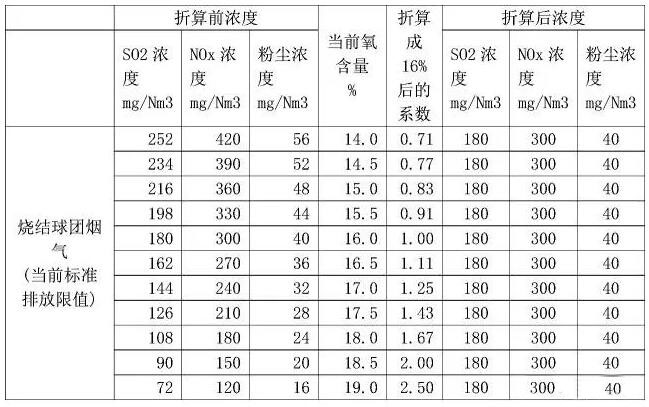 表1排放濃度按不同氧含量折算后的濃度