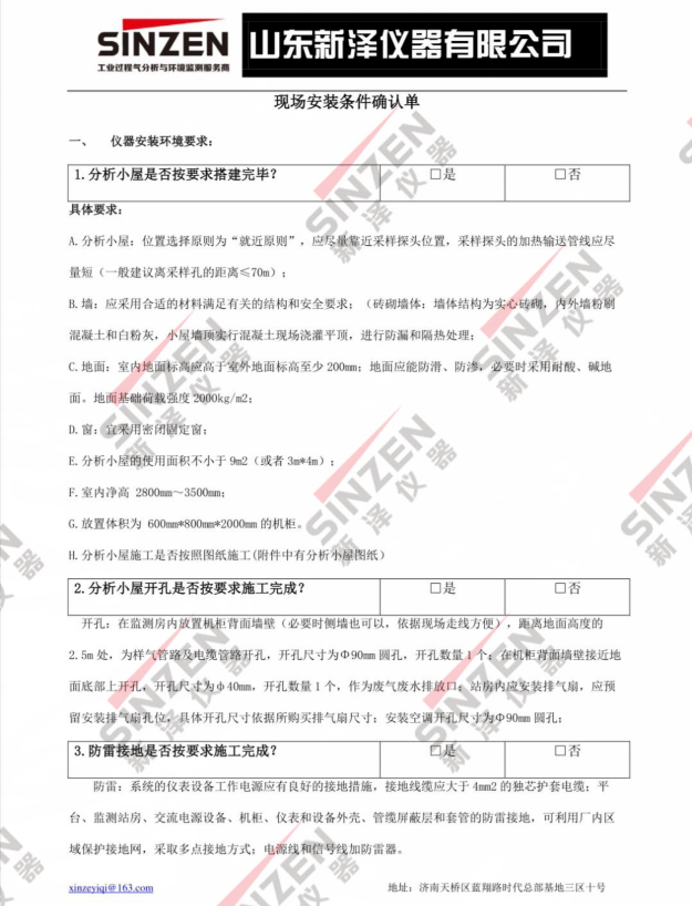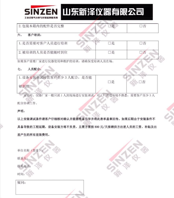 尊敬的客戶您好,首先非常感謝您選購我們山東新澤儀器有限公司生產的煙氣在線監測系統,山東新澤是一家專注煙氣在線監測系統生產的品牌企業,為了您訂購的設備能夠及時盡快的安裝投入運行,貴公司需要注意以下事項和準備事宜: